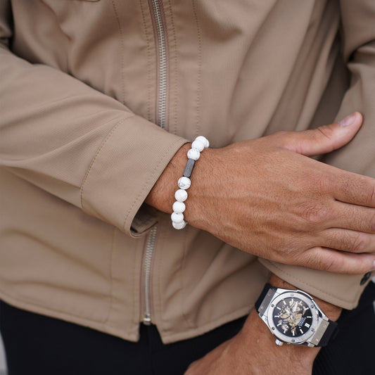 Thomas & George Herren Armband aus 8mm Achat und Tigerauge mit schwarz-weißer Optik
