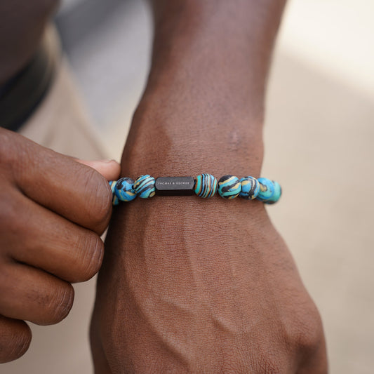 Thomas & George Herrenarmband aus 8mm Agat und Tigerauge – Auffälliges Türkis und Türkisblau