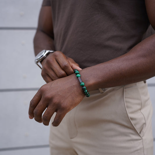 Thomas & George Herren Armband aus 8mm Agat und Tigerauge mit grünem Effekt