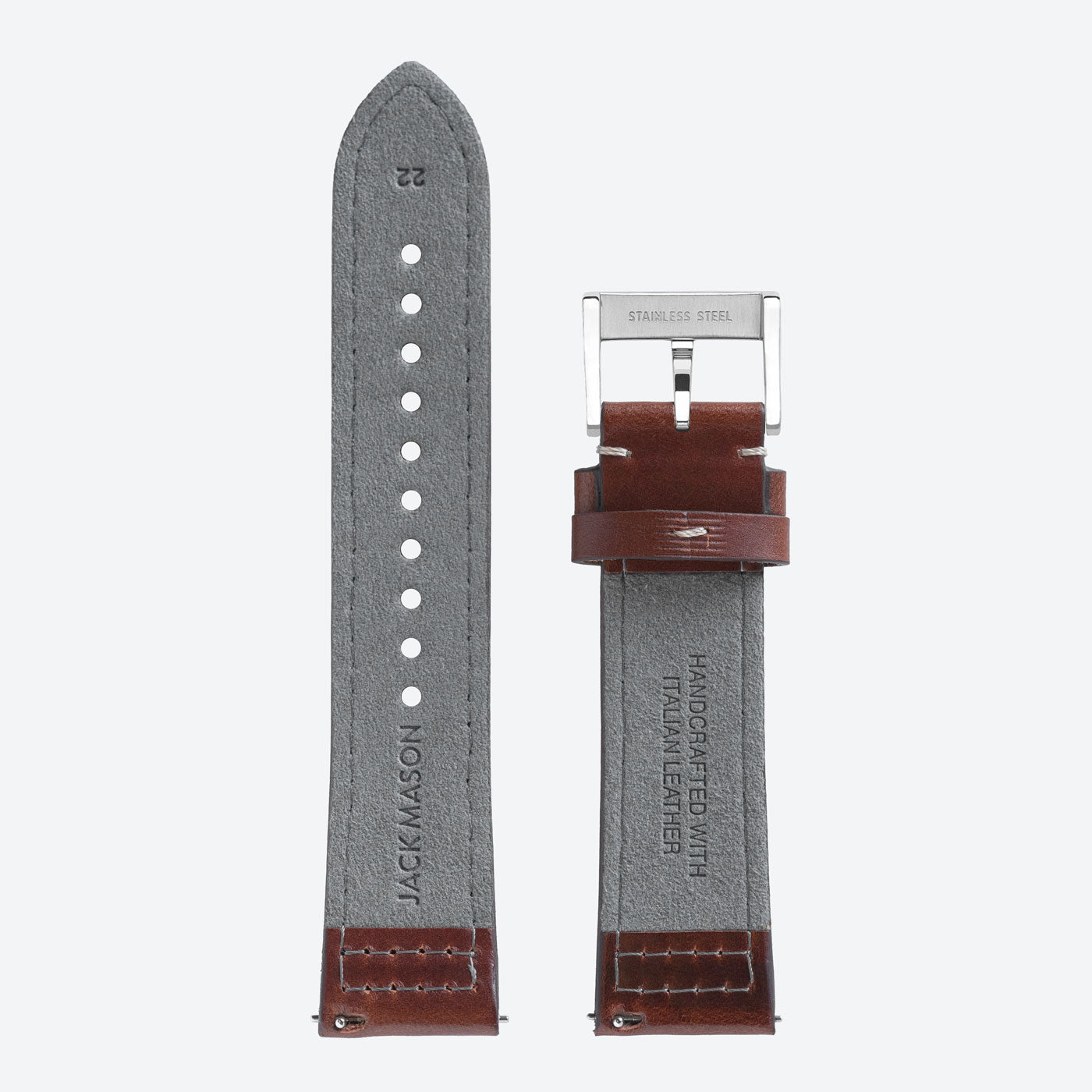 22mm Boxed Stitched Brown Leather Strap