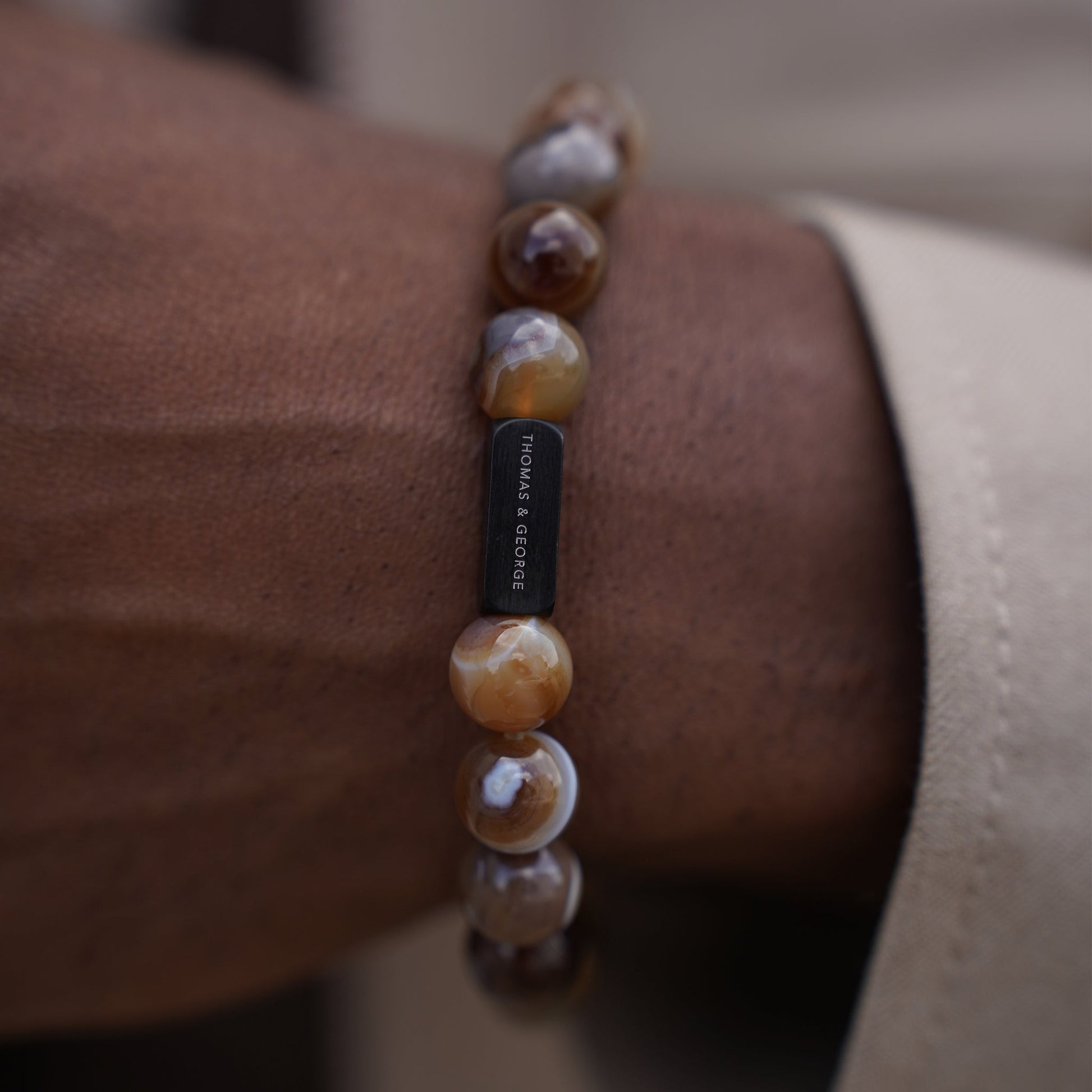 Thomas & George Herren Armband aus 8mm Agate & Tigerauge mit warmer Erdtönung